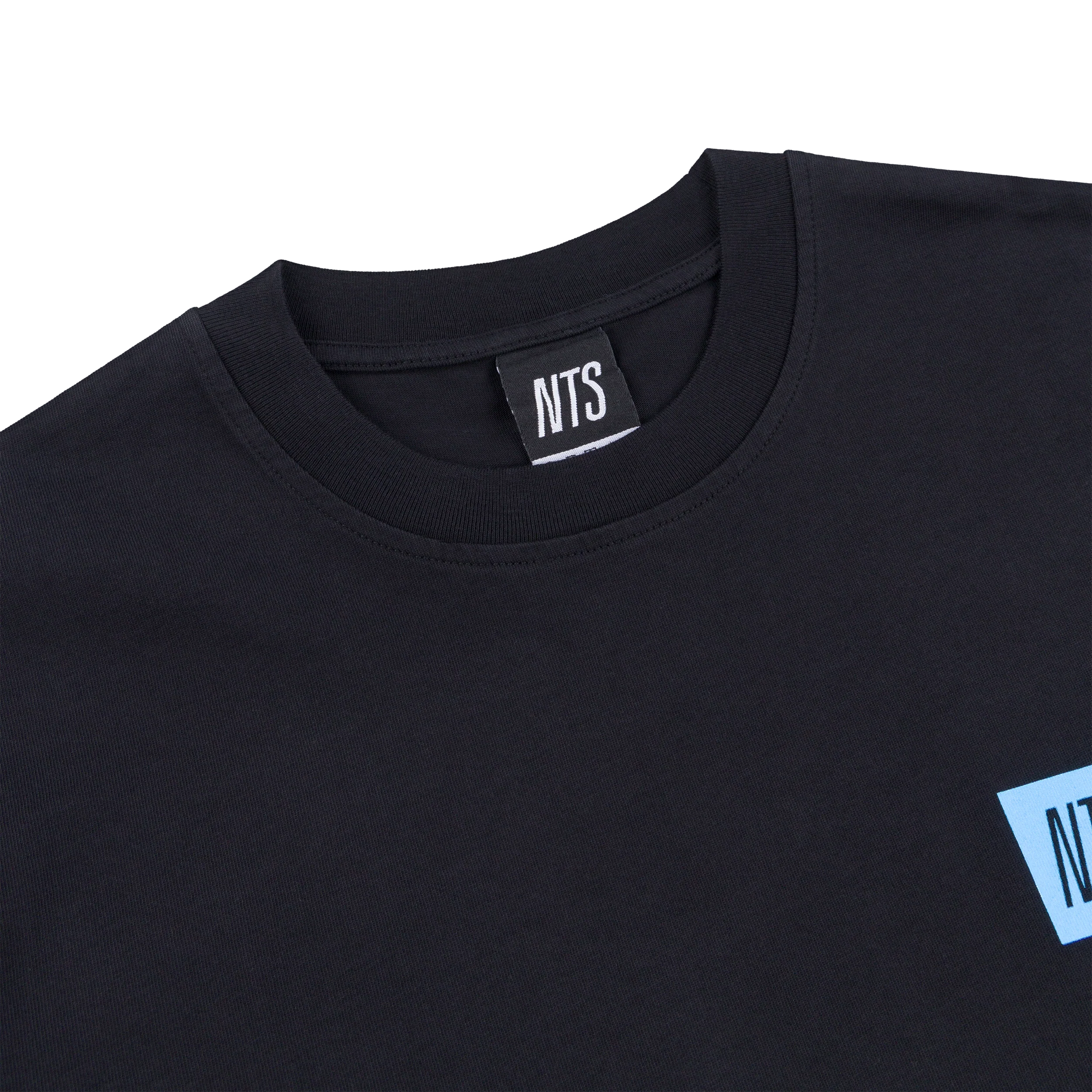 Black longsleeve t-shirt with NTS logo printed on the front.