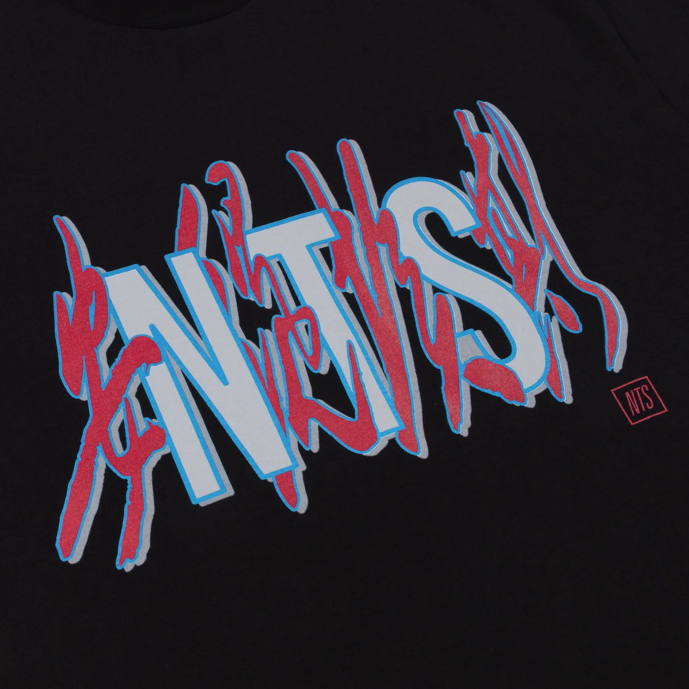 Neon NTS type and calligraphy, on a classic NTS black tee.