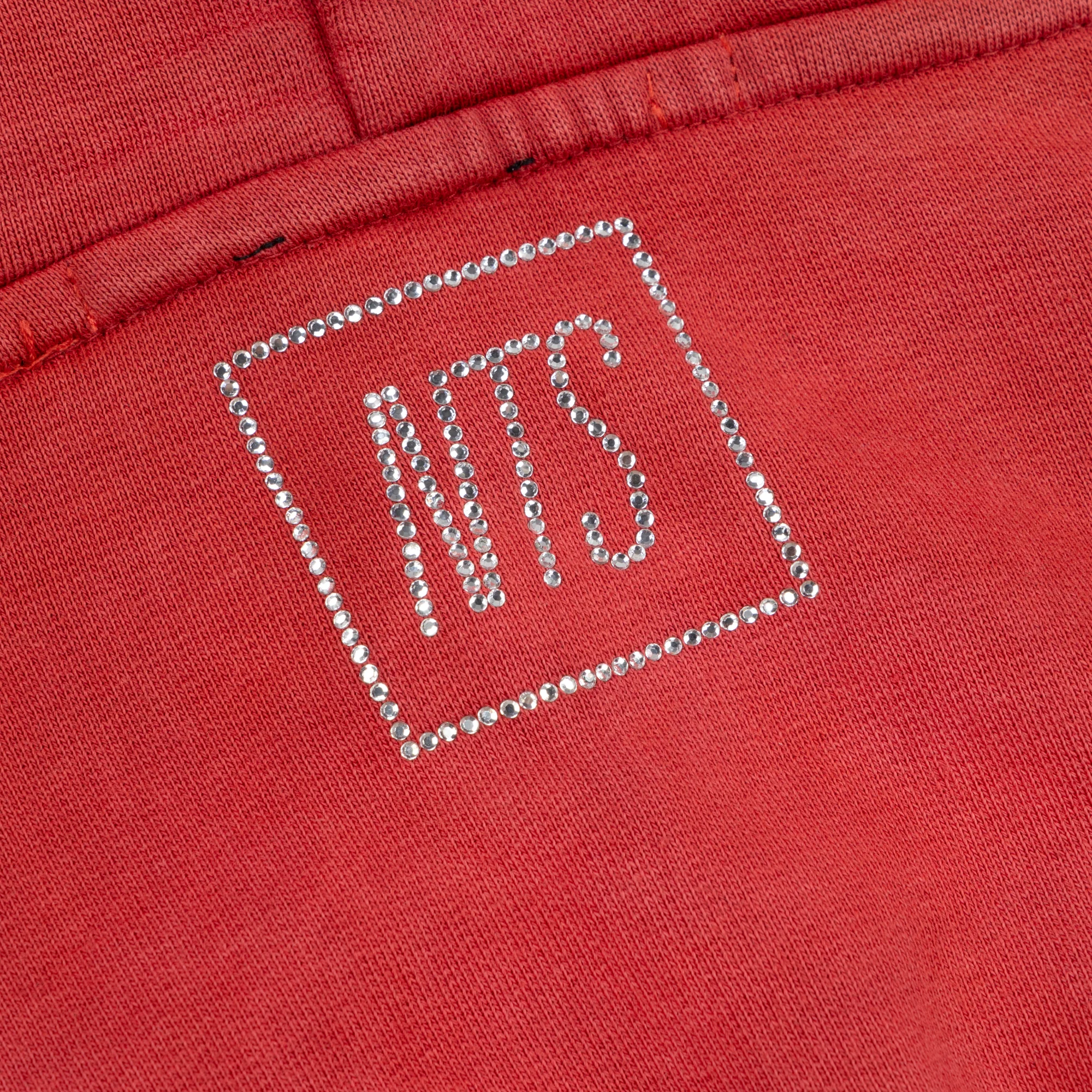2 of 2. Handmade and hand-dyed hoodie by Timothy Gibbons for NTS. Featuring front NTS 'Don't assume' tagline in rhinestone and Irish rhinestone detailing on the right shoulder, with a signature corseted waist in bright red cotton. Handmade in the UK by Timothy Gibbons. Size XL. Please check the measurements before purchasing.